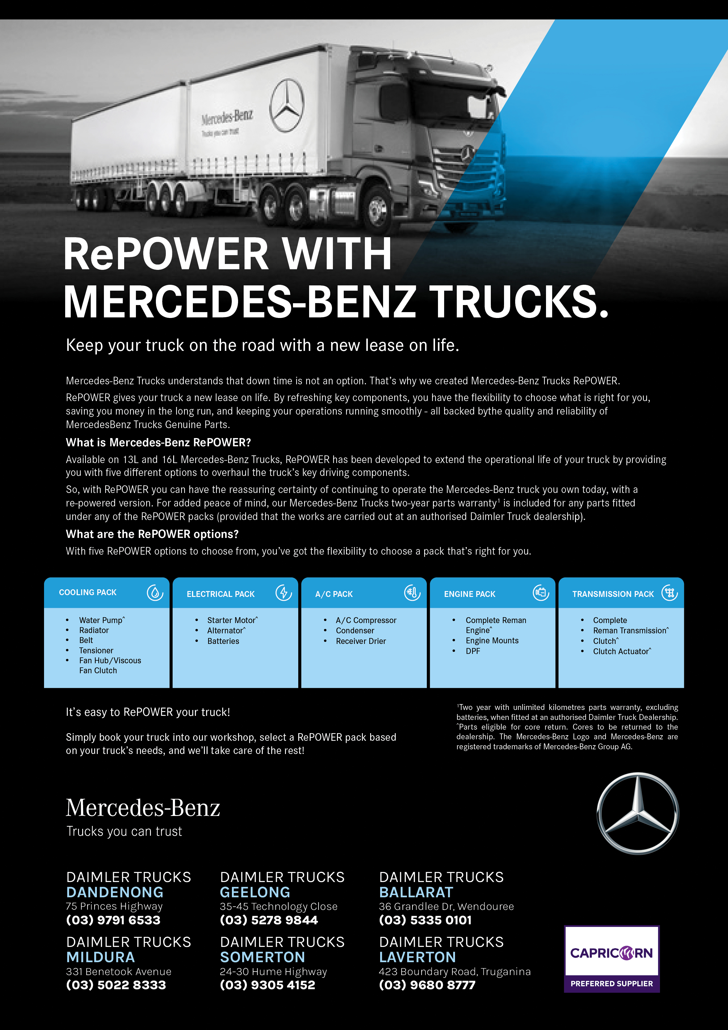 NEW Mercedes-Benz Trucks RePOWER Parts range now available in VIC!